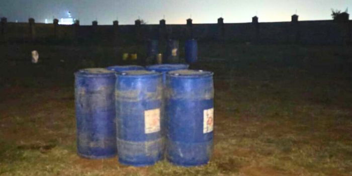 Although the lorries had departed by the time enforcement officers arrived at the location, the team successfully recovered the contraband that had been unloaded and concealed within the premises. The haul comprised 20 industrial drums, each containing 250 litres, bringing the total volume to 5,000 litres of ethanol.