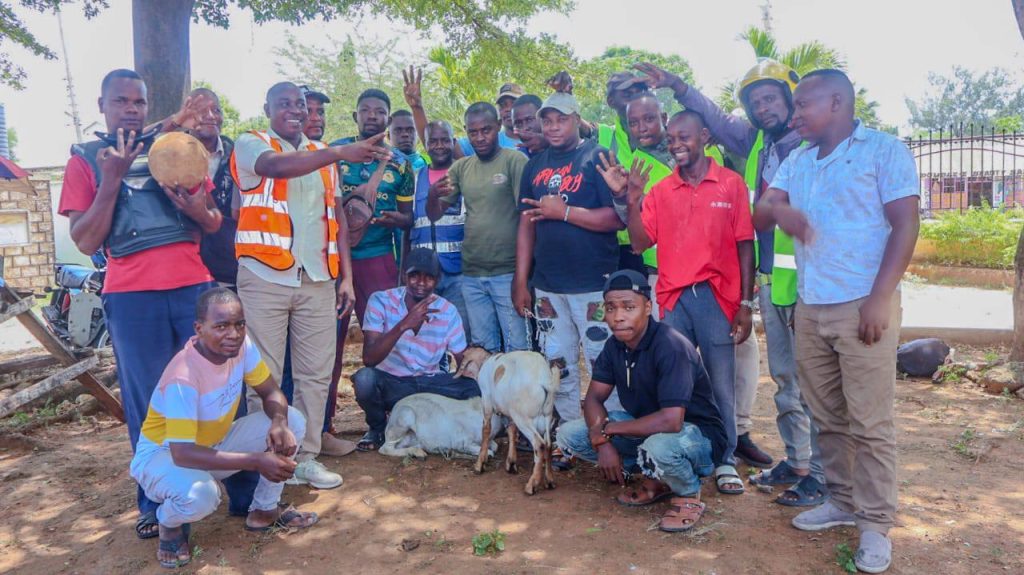 In addition to the community-wide distribution, MP Mboko extended her generosity to key transport and civic groups that form the backbone of daily life in Likoni. Boda boda operators, matatu drivers, members of the Likoni Citizens’ Assembly (Bunge la Mwananchi), and the Soweto Boda Boda group all received goats for their Christmas celebrations.