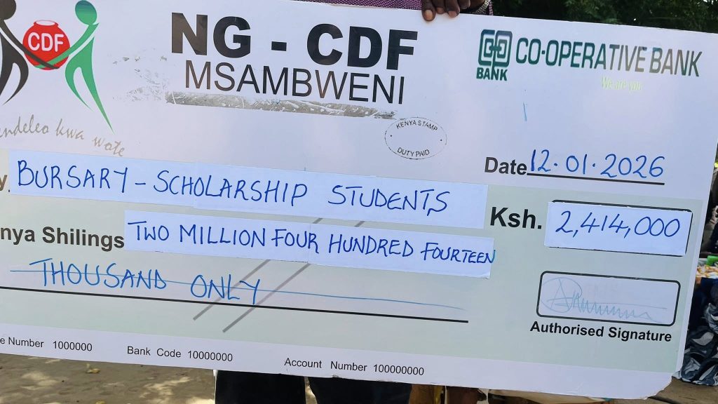 In a parallel initiative, bursary cheques totaling KSh 2,414,000 were distributed to academically strong but financially disadvantaged students under the Msambweni NG-CDF Sponsorship Program. The initiative, launched in 2022 following Bader’s re-election, continues to provide critical support to learners who might otherwise be unable to continue their education.