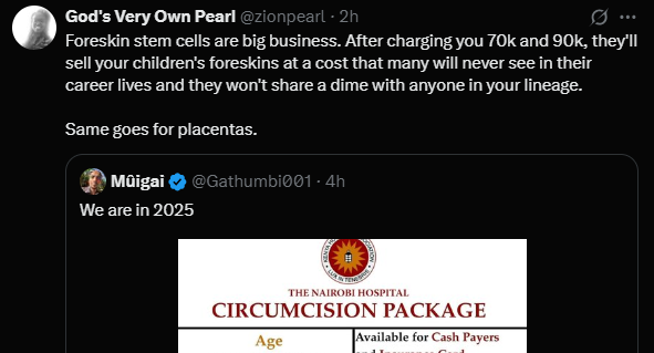 “The conversation isn’t just about the price tag; it’s about what we value as a society,” one social media user commented. “When a hospital charges more for a circumcision than many Kenyans earn in a year, it forces a conversation about equity and the direction of our healthcare system.”
